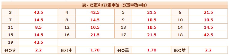 通過上圖我們可以很明晰的看到北京賽車PK10冠亞軍和的賠率,